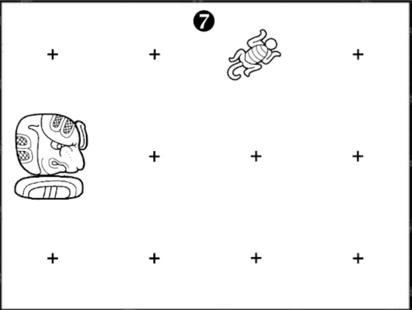 After a perilous journey, you finally make it to the treasure room! It’s a vast, empty chamber that looks totally safe, with a stone pedestal in one corner and some carvings on the floor. In another corner, presumably discarded by the original builders, is a cloth containing pictures and writing. You translate it: