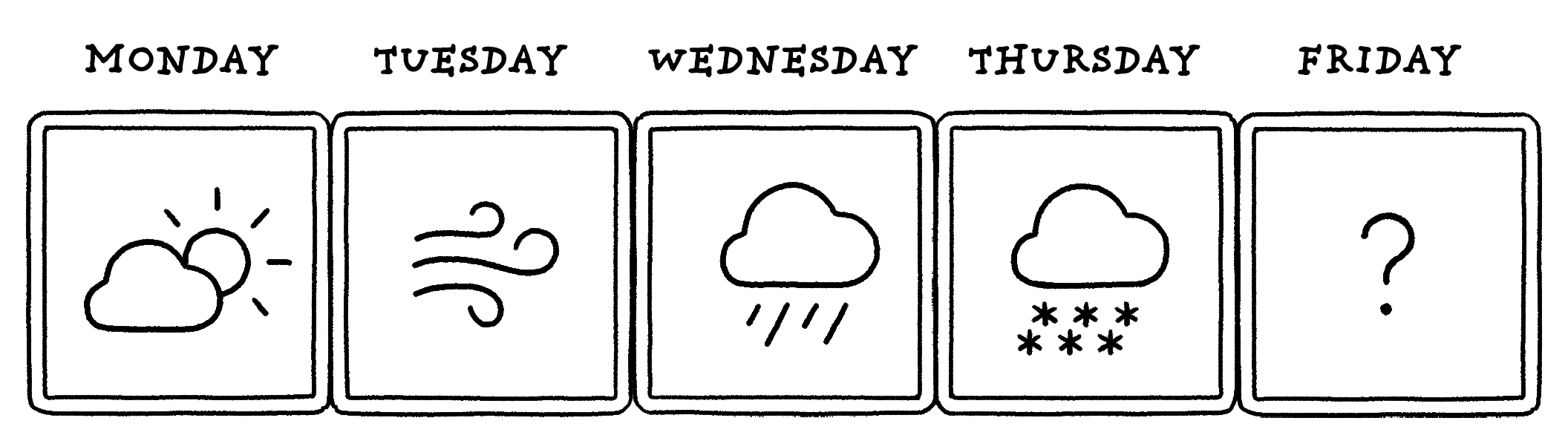 | Wednesday: | Torrential rain will flood the city. Look out for water funneling into the lower regions. Those living in skyscrapers on the third storey or below are advised to evacuate. |